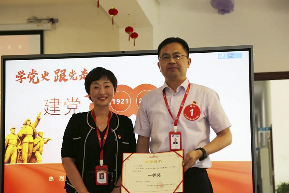 支部书记、总经理梁燕同志致辞。她第一时间祝贺获奖团队和优秀个人,对各位参赛选手沉着应战、赛出风格、赛出水平、赛出成绩、勇夺桂冠表示祝贺,勉励他们再接再厉,继续发扬先锋模范作用。同时,她指出,举办党史知识竞赛目的是引导广大党员回顾中国共产党从创建到开展到壮大的历程,增强对党的归属感和认同感。她希望全体员工要倍加珍惜当前工作、学习、生活环境,要在党史学习教育中学有所成、学有所获,不断提升自己党史理论修养,吸取智慧和力量,增强荣誉感与责任感,在自己的工作岗位上,贡献自己的力量和智慧,以实际行动助推企业高质量开展。